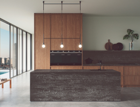 Caesarstone Crystalline Silica Free surfaces are crafted from a unique blend of distinctive minerals and innovative materials, with the new range containing a minimum of 80% recycled content (such as glass).