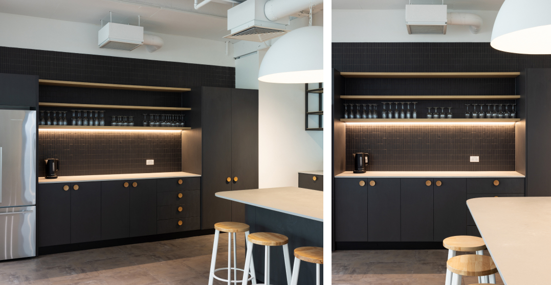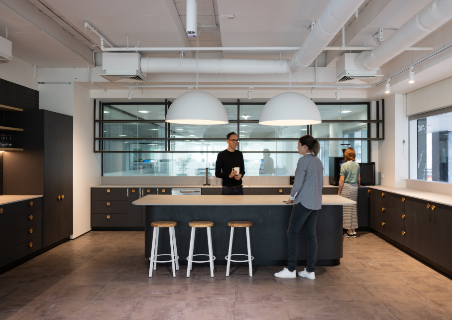 With the open-plan fitout designed for adaptability and transformation, incorporating hard-wearing Laminex Melteca and Caesarstone surfaces meant STACK could future-proof their client’s investment.