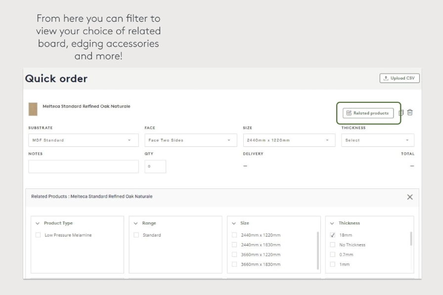 Introducing our new Related Products functionality - find matching board, edgings, accessories and more at the click of a button. No need to search again.