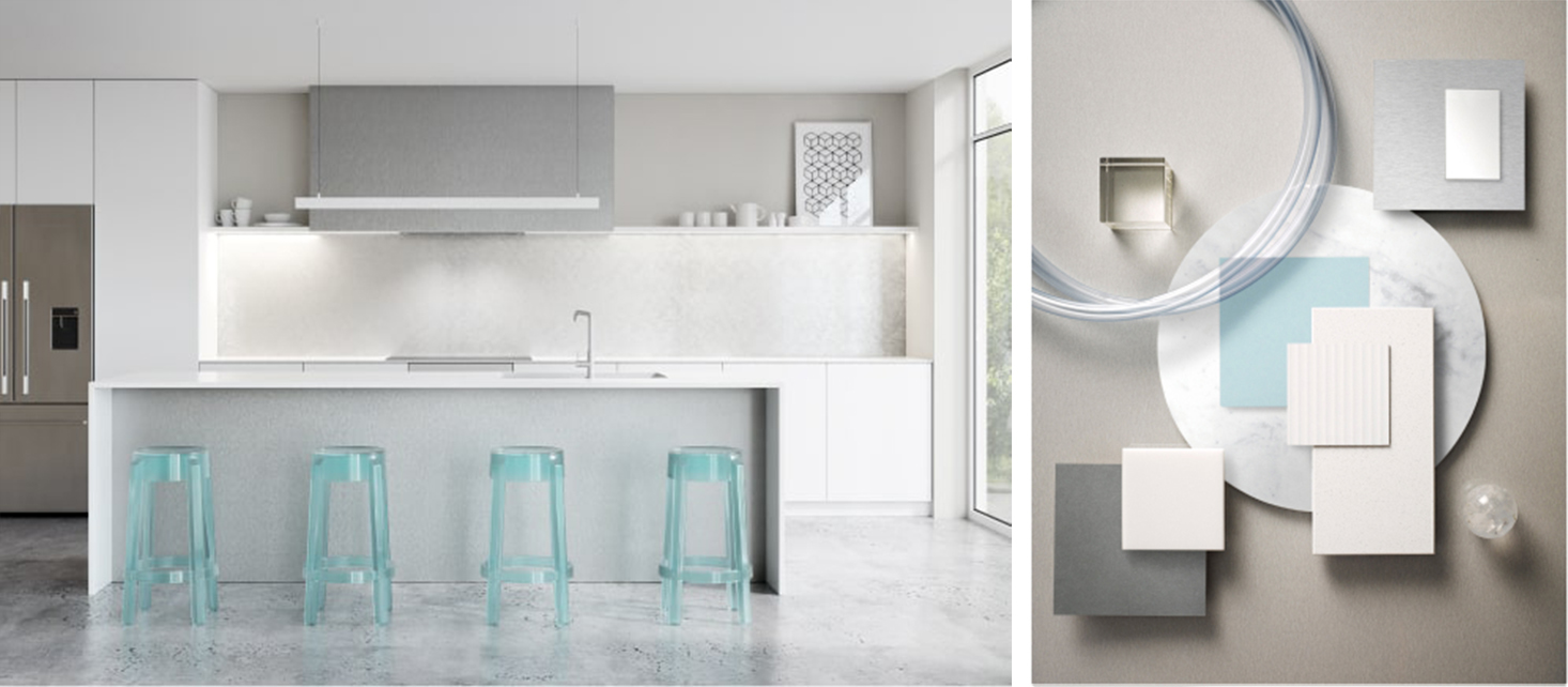 Ethereal and dreamy, the Digital palette is luminous. Subtle in its textures, and accented with metallics, it feels modern and forward-thinking – a minimal backdrop for feature lighting or furniture. The style creates a soft and uncluttered interior to inspire a calm and future-focused atmosphere.