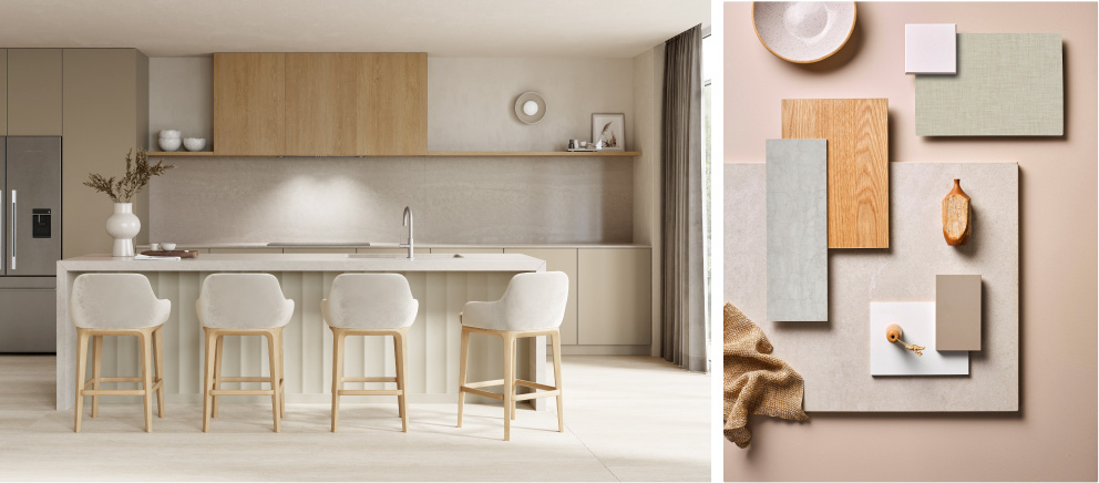 Grounded by natural colours and textures, Tonal is warm, serene and softly textured. Calming neutrals are styled with whites, pinks and timber – organic materials that bring depth to interior spaces. Authentic and honest, the friendliness of Tonal makes it a backdrop for any occasion.