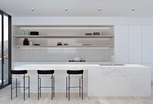 The all-white kitchen is timeless. Luminous and optimistic, white speaks of cleanliness and a readiness for entertaining. Delicate veining patterns bring subtle details to White Nights, and a herringbone effect catches the light. Simple and minimal, this design style is quietly self-assured.