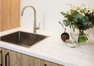 Explore detailed information about design and specification considerations to maximise the potential of your laminate projects. For example, create a modern and stylish island by incorporating a waterfall end.