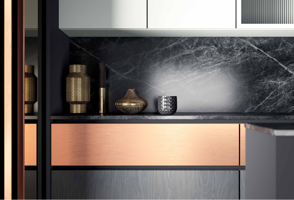 Laminex Metallic Laminate combines the colour and character of real metals with the practical properties of laminate. Created as a texture on top of real metal foils, metallic laminates achieve a textile feel with a crisp touch and low gloss sheen.