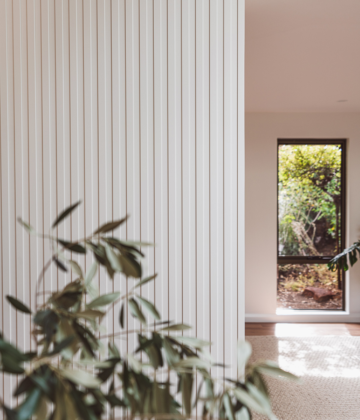 Surround by Laminex French Stripe 30 adds depth and dimension, instantly elevating this transitional space between the kitchen and dining room.