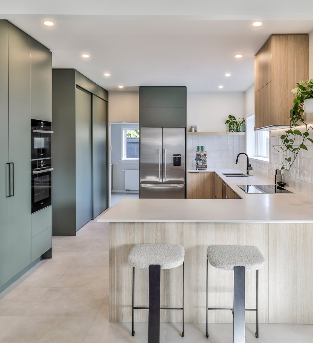 We love this gorgeous kitchen by Mastercraft Kitchens Wellington using Melteca Green Slate, the neutral grey base of Green Slate has a natural and earthy quality, for a warm and timeless look.