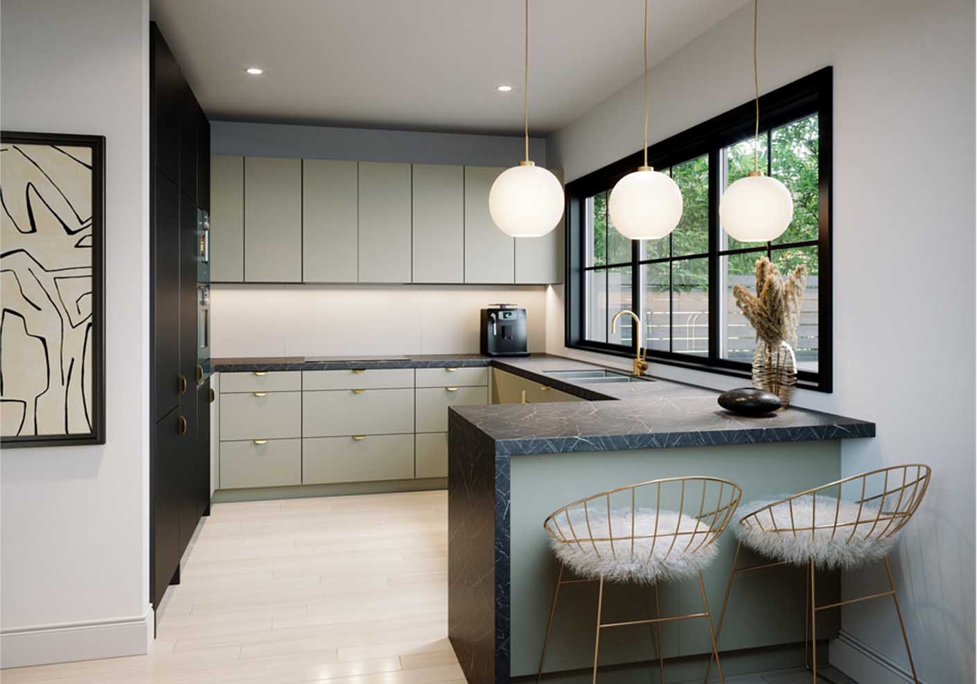 Featuring Laminex Formica Nero Grafite as the benchtop and Melteca Dawn Grey as the cabinetry to create this well-balanced, sophisticated style.