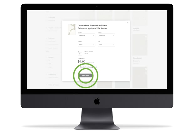 Select the finish and size or sample you are interested in. To select a brochure, click the tick box to see the available options. Enter the desired quantity and Add to basket. The requested items are added to your sample basket cart.