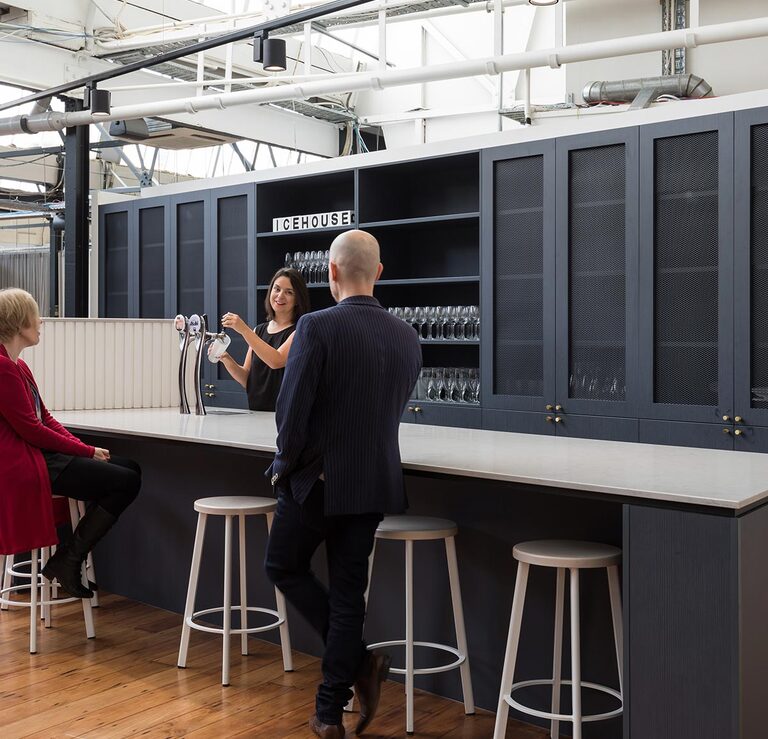 Images from the Icehouse co-working space, design and construction by Cachet Group. Benchtop is Caesarstone Georgian Bluffs